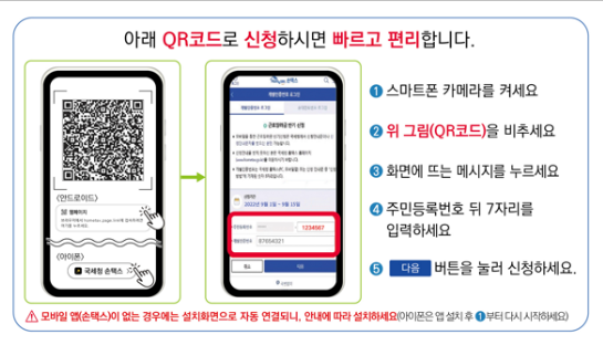 서면의 경우 큐알코드를 신청하면 방법은 같습니다.