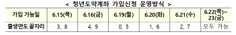 가입자가 몰릴것을 우려, 영업일 첫 5일기간동안에는 5부제로 가입신청을 할 수 있게 해놨고,