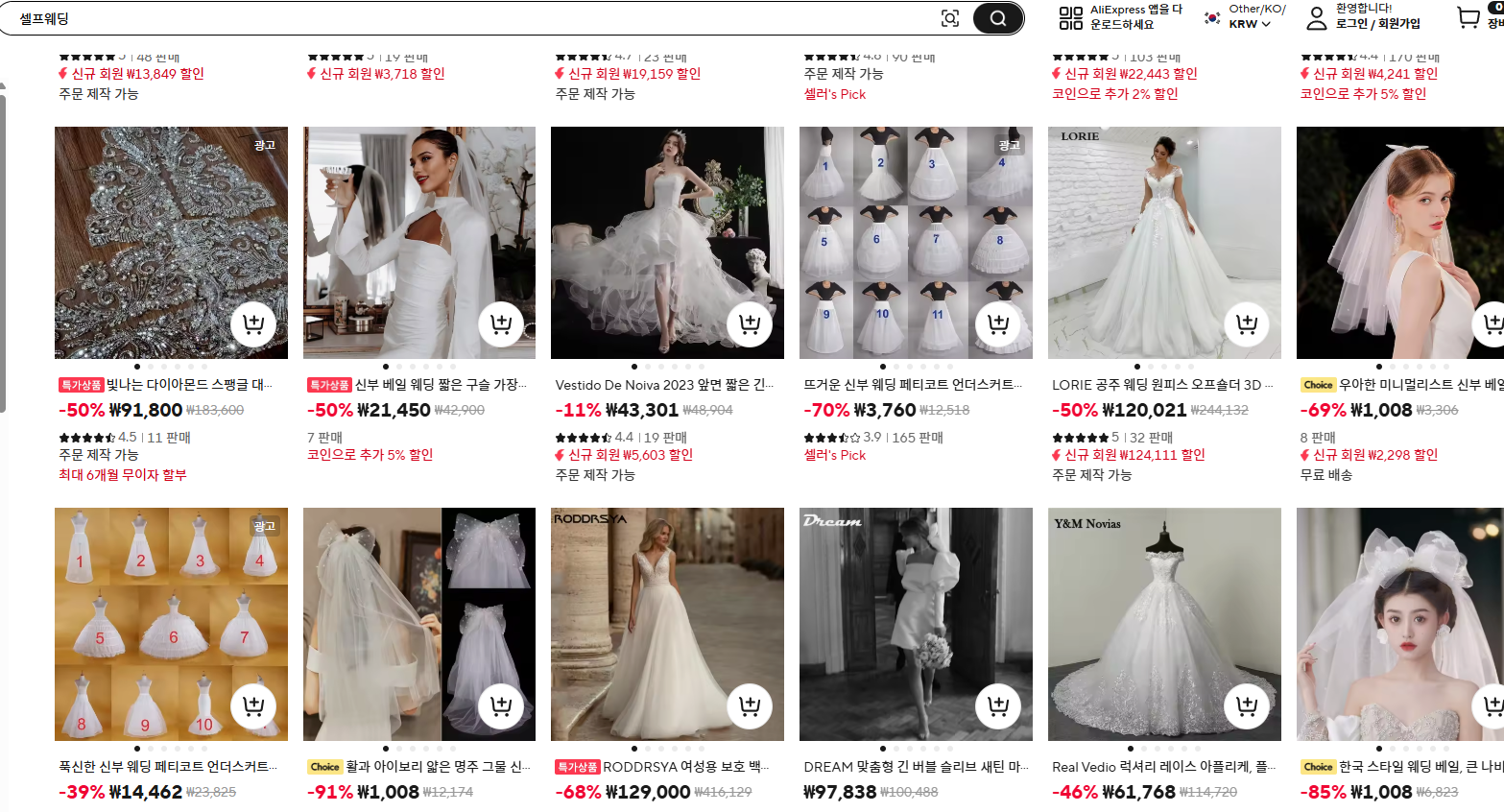솔직히 말씀드리면, 드레스 대여 비용만 해도 만만치 않잖아요? 그래서 폭풍 검색 끝에 알리익스프레스에서 '혹시나...?' 하는 마음으로 웨딩드레스를 찾아봤어요. 수많은 드레스들을 구경하다 보니, 생각보다 퀄리티도 괜찮아 보이고 가격도 정말 착한 드레스들이 많더라고요! 👀