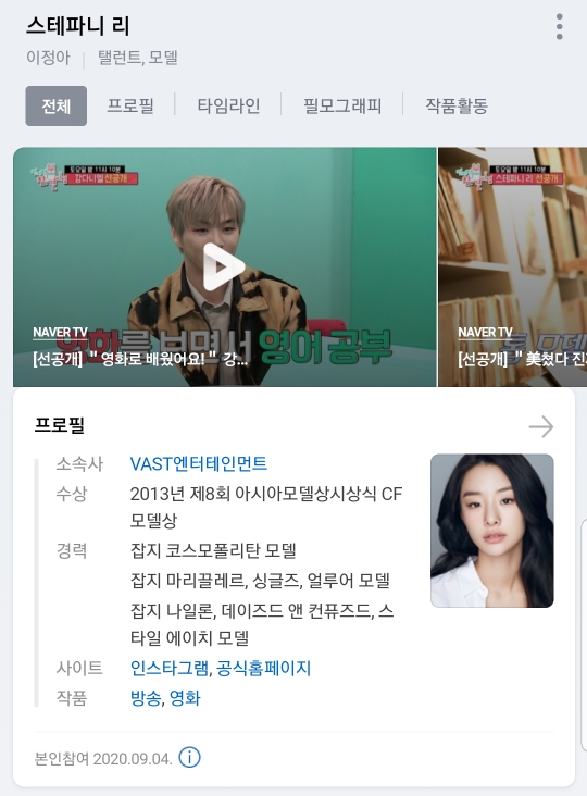 VAST 엔터테인먼트 소속의 모델ㄹ2013년 아시아 모델 시상식 모델상을 받기도 했습니다.
